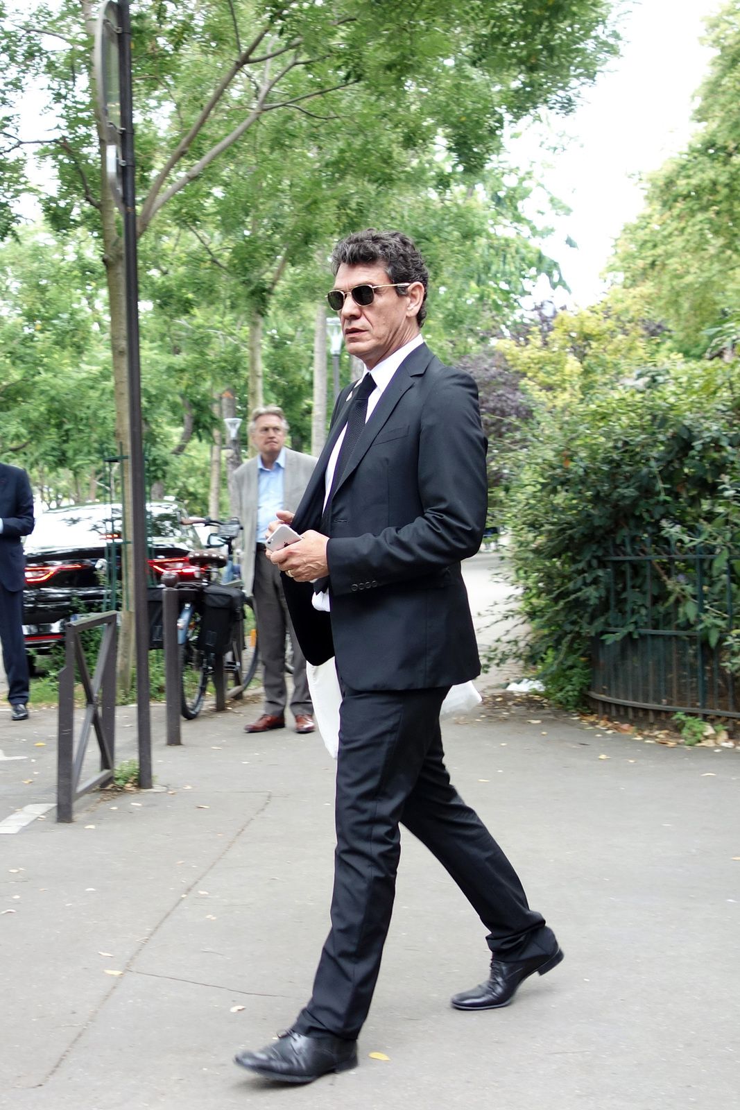L'église se remplit, beaucoup de personnalités sont présentes. J'aperçois au premier rang Alain Delon, une rose blanche à la boutonnière, près de lui Carla Bruni. De l'autre côté du rang, Pascal Desprez, le mari de Mireille Darc. Arriveront en dernier Johnny Hallyday et Laetitia, ils seront placés aussi au premier rang.